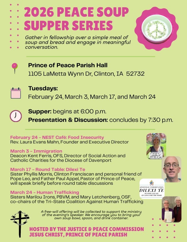 Please visit the Catholic Messenger events page to find local and other events around the Diocese. List of events: https://catholicmessenger.net/2024/02/calendar-of-events-post.